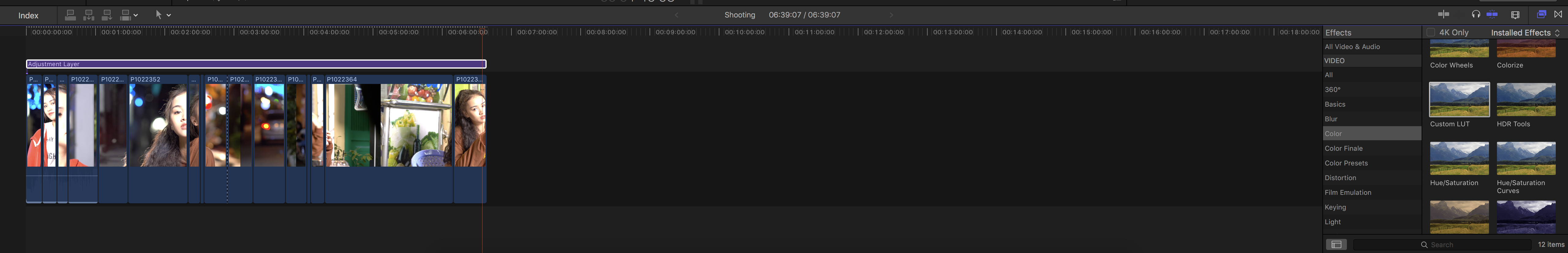 With the Adjustment Layer highlighted, go into the Effects Browser, choose Color, then double click on Custom LUT.