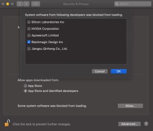 2. Select App Store and identified developers” and then “Allow” Blackmagic Design at the bottom of the window. Leave a Reply Cancel reply Δ This site uses Akismet to reduce spam. Learn how your comment data is processed.
