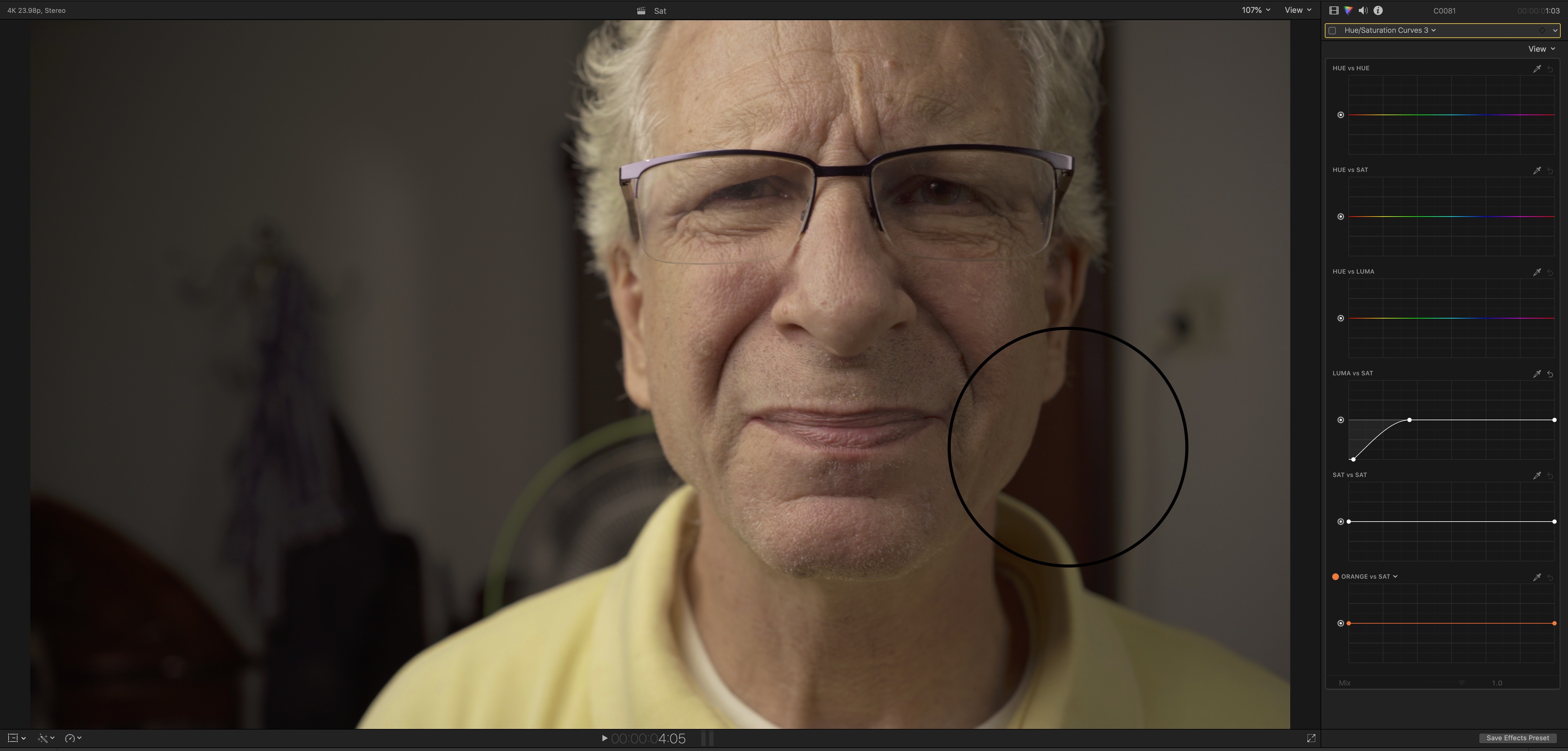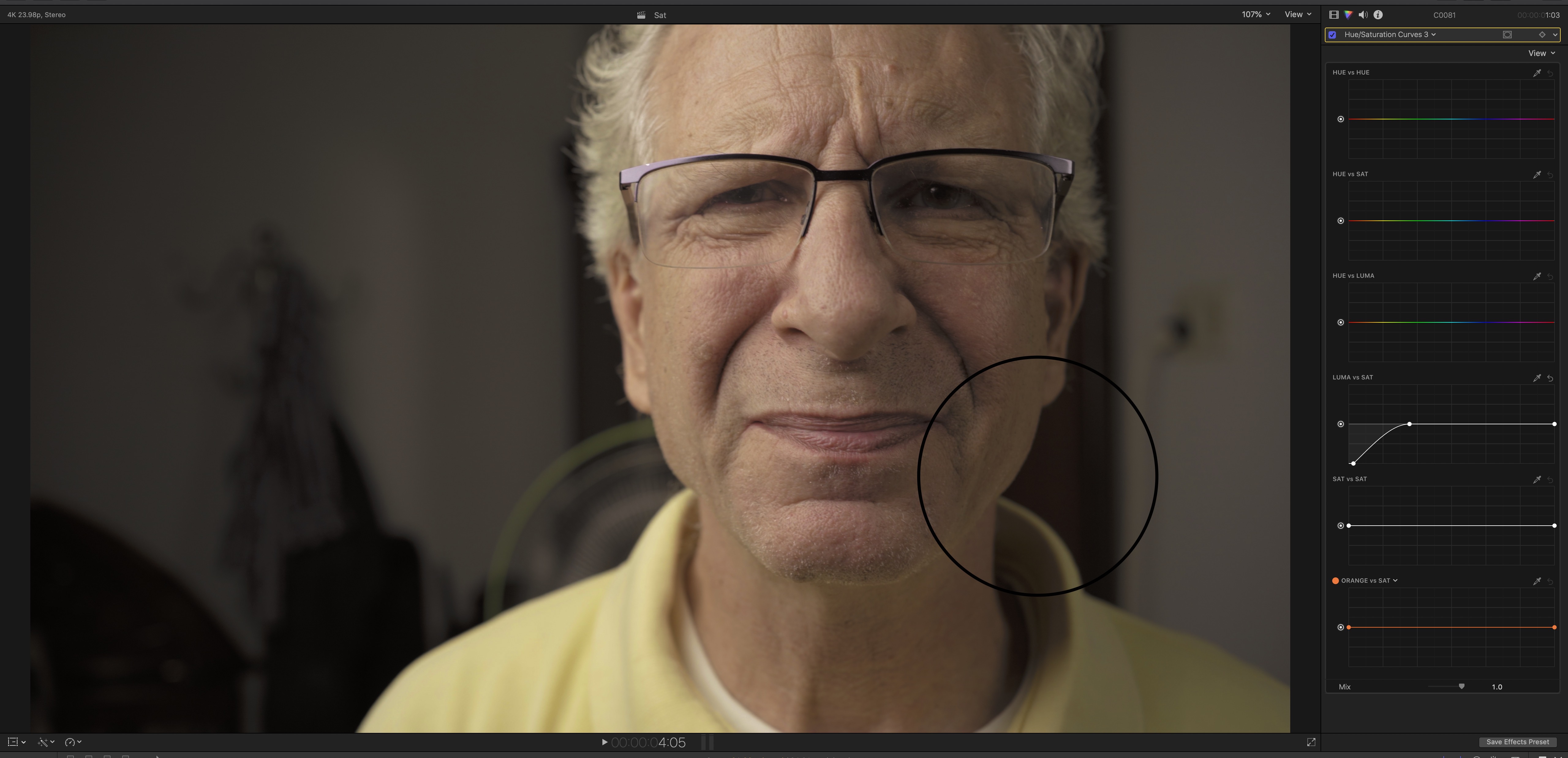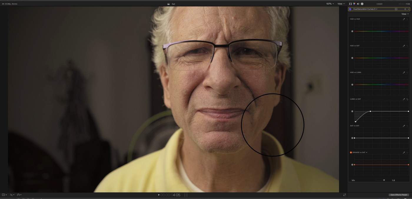 One effortless step toward the cinematic look is to place an HSL curve at the very beginning of your grading workflow (after applying Leeming LUT Pro) and desaturating shadows.