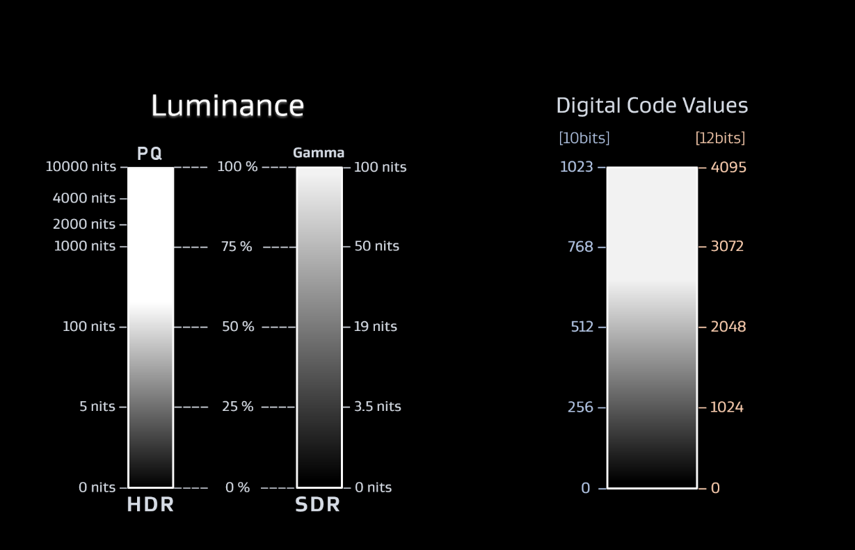 “When creating text and graphics, it is important to prepare them for an HDR/PQ finish further downstream in the workflow as they can produce unexpected results. For example, white text/graphics created at code value 1023 (10bit) will appear as 100% white which is around 100 nits on a calibrated SDR display. This same text/graphic will again present itself at 100% white in PQ which would translate to 10,000 nits on a PQ display”. – Dolby