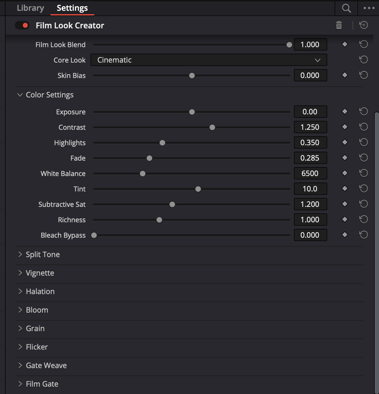 DaVinci Resolve 19 introduced the Film Look Creator that lets you add cinematic looks that replicate film properties like halation, bloom, grain, flicker, gate weave and vignetting.