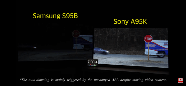 HDTVTest, in their review of the Sony A95K QD-OLED, compare it to the Samsung S95B, which shares the same QD-OLED panel. After running footage on a loop with the same APL for several minutes, the Samsung becomes noticeably darker while the Sony picture maintains its brightness, owing to a heat dissipation layer that reduces the... Continue Reading →