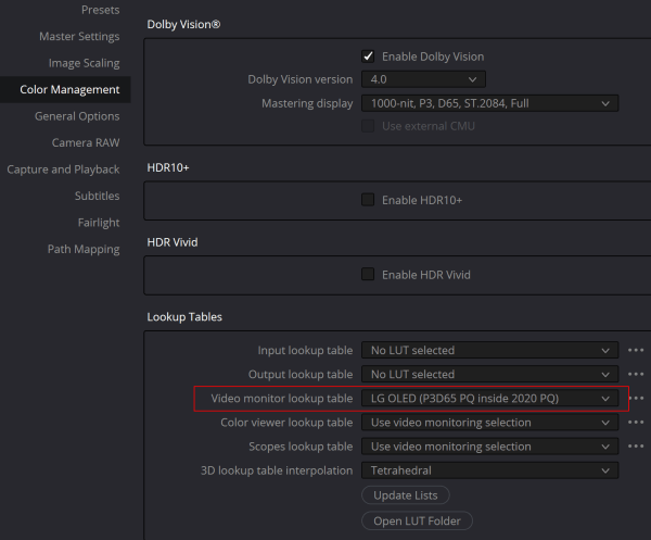 P3D65 ST.2084 (HDR) Monitoring for LG OLEDs (WRGB)