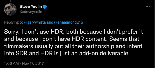 Steve Yedlin’s LG C2 settings, the myth of 100-nit SDR and HDR authorship