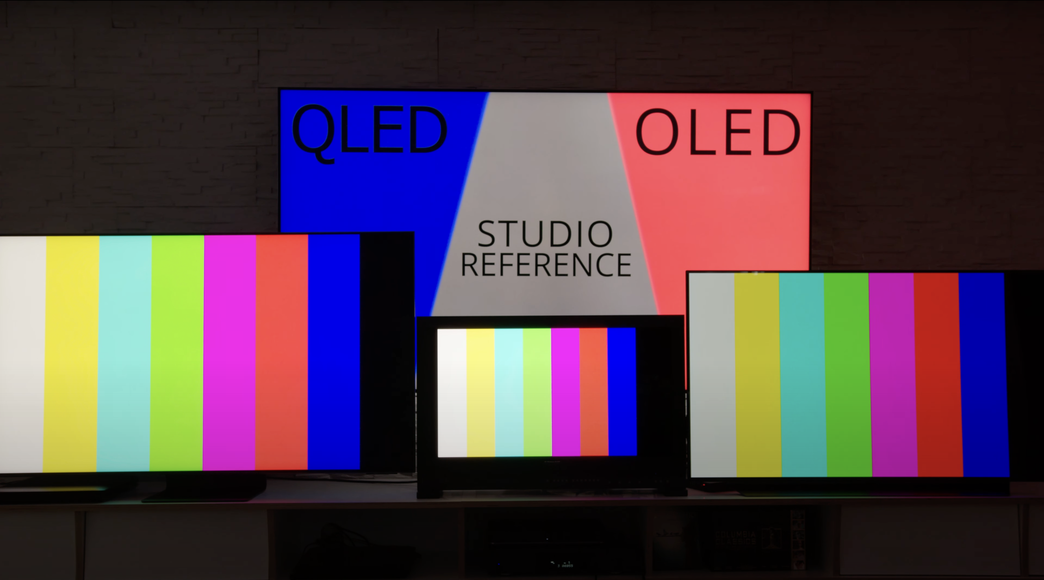 We just compared the 16″ MacBook Pro (2021) to the LG CX with this test video by Florian Friedrich and it was quite an eye-opener! The difference in color volume is similar to comparing Samsung’s QLED to the LG C1 OLED in the header picture and the one below (Sony BVM-HX310 mastering monitor, center). Why don’t you try it for yourselves and leave feedback?