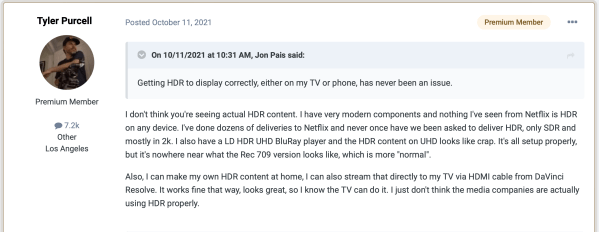 An old post over at Cinematography.com that never grows old. Tyler can be forgiven for thinking there's no HDR content on Netflix, but 2K deliverables? :))