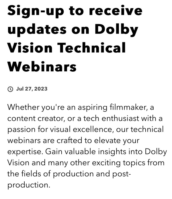 Many decried SMPTE's revision calling for a 5-nit surround as being too stringent, while Charles Poynton maintained the new standard was too lax. "SMPTE ST 2080-3 calls for a surround luminance of 5 nt (that is, 5% of the 100 nit reference white luminance of ST 2080-1). ST 2080-3's Annex A provides a highly questionable... Continue Reading →