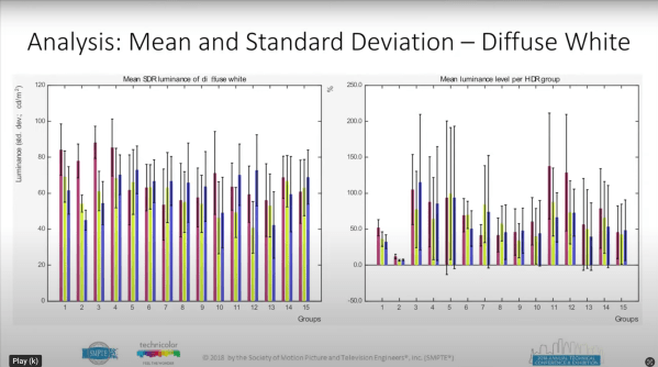 On the left, SDR is very uniform, with mean diffuse white sitting at around 60 nits, while HDR shows high variability. A range of content, from indoor and outdoor sports, stand up comedy, nature programs and talk shows to movies was included. The variability in luminance range is indicative of greater creative freedom in the... Continue Reading →