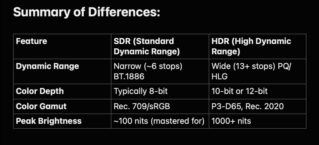 CLAIM: “The difference between “SDR” and “HDR” is all artificial marketing. It is quite literally just a OEM artificially limiting the capacity of the display contingent on using the worse non-display-relative HDR signal protocol.”